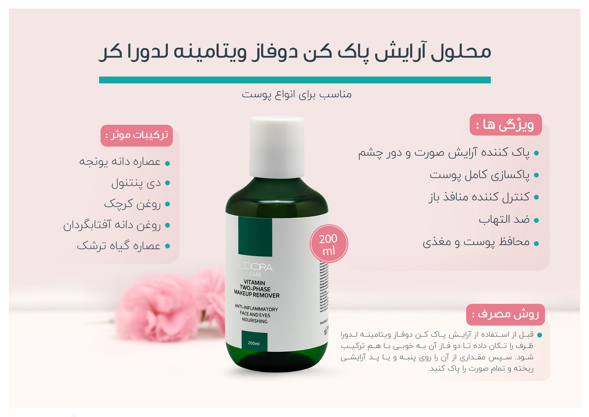 2: ویژگی ها پاککننده آرایش صورت و دور چشم، پاکسازی کامل پوست، کنترلکننده منافذ باز، ضدالتهاب، محافظ پوست و مغذی