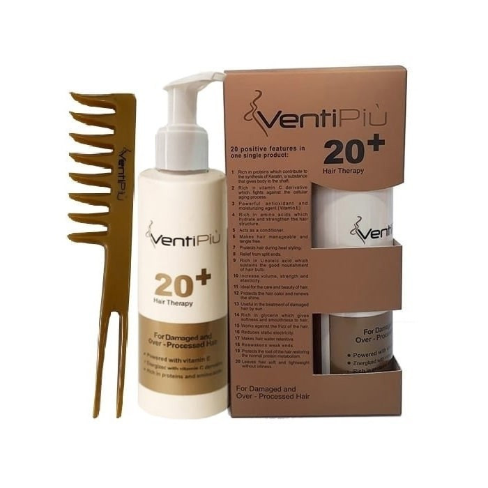 کرم مغذی موی سر 20 کاره VentiPiu، محصولی با 20 ویژگی کاربردی برای مو تولید شده است و به کمک ترکیبات خاص خود سلامتی و زیبایی مو را حفظ میکند. این محصول اثری از چربی روی موها به جا نمیگذارد و به سرعت جذب میشود. کرم مو 20 کاره ونتی پیو عاری از پارابن و رنگ مصنوعی است.