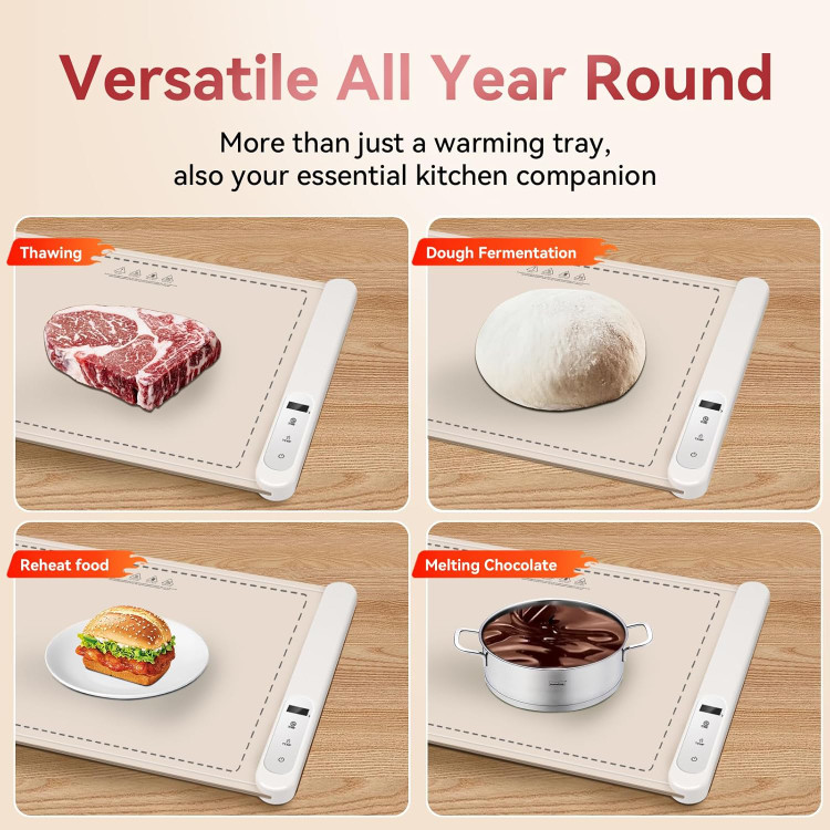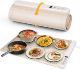 تشک گرمکننده غذا CSTDE، تشک گرمکننده غذای قابلحمل گرمایش کامل با 6 تنظیمات دما، سینیهای گرمکننده الکتریکی سیلیکونی برای غذا، گردهماییها، مهمانیها، بژ