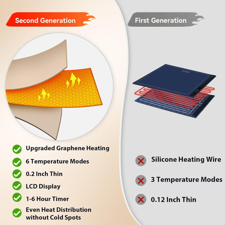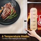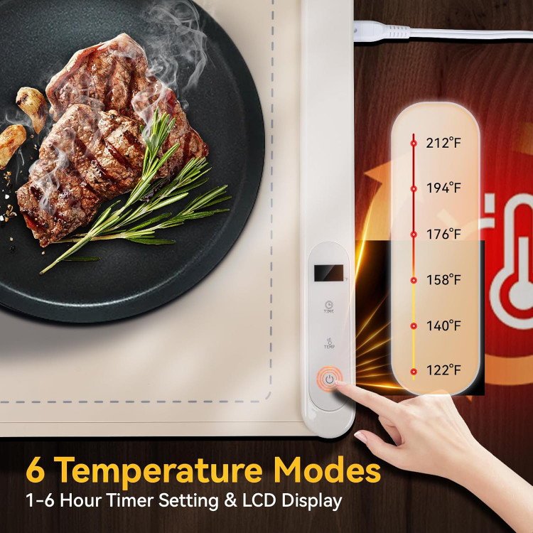 کنترل دقیق دما و زمان: تشک گرم کن غذا دارای 6 تنظیم دمای قابل تنظیم و تایمر 1-6 ساعته است تا بتوانید کنترل دقیق دما را تجربه کنید. مطمئن شوید که غذای شما در دمای عالی قرار دارد در حالی که زمان را به راحتی مدیریت می کنید.