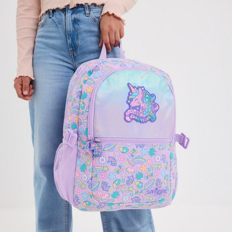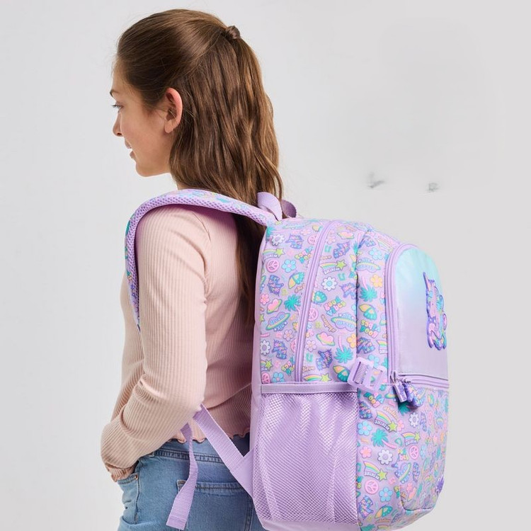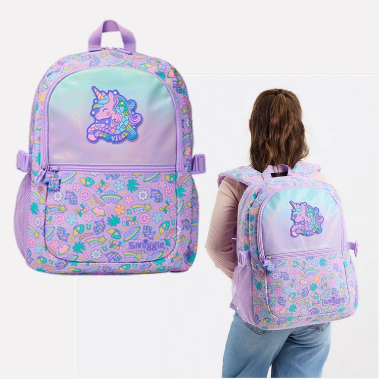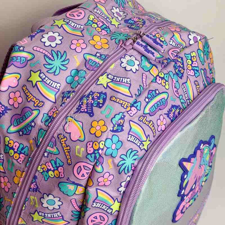 این کوله پشتی اسمیگل دخترانه دارای سه محفظه زیپدار برای نگهداری لوازم التحریر، لوازم شخصی، تنقلات و موارد دیگر است! به علاوه، دارای دو محفظه برای بطری نوشیدنی و بندهای شانهای قابل تنظیم پدگذاری شده است. همچنین دارای گیره های جانبی کاربردی است که برای نگهداری آسان ناهار به جعبه ناهار All Stars Oblong Attach ما متصل میشوند. جزئیات طراحی اضافی از جمله زیپهای فرمی، آویز سیلیکونی و چاپ گرافیکی را بررسی کنید!